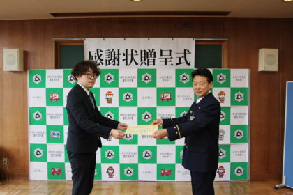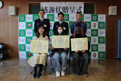 この迅速かつ的確な判断と勇気ある救命活動に敬意を表し、2月15日・22日に園部消防署長が感謝状を贈呈しました。